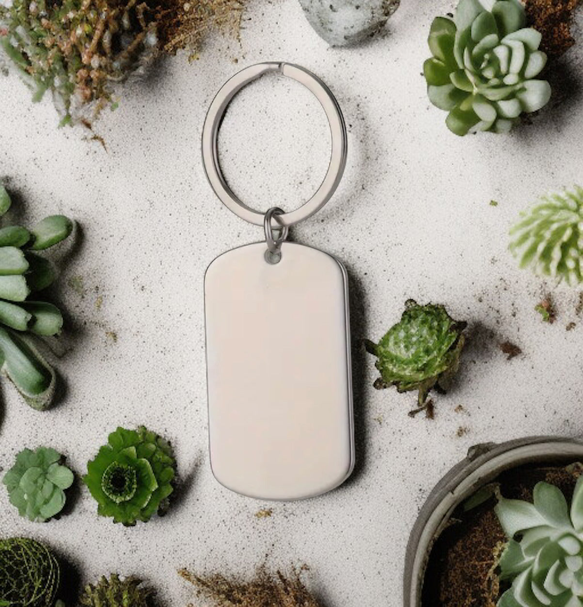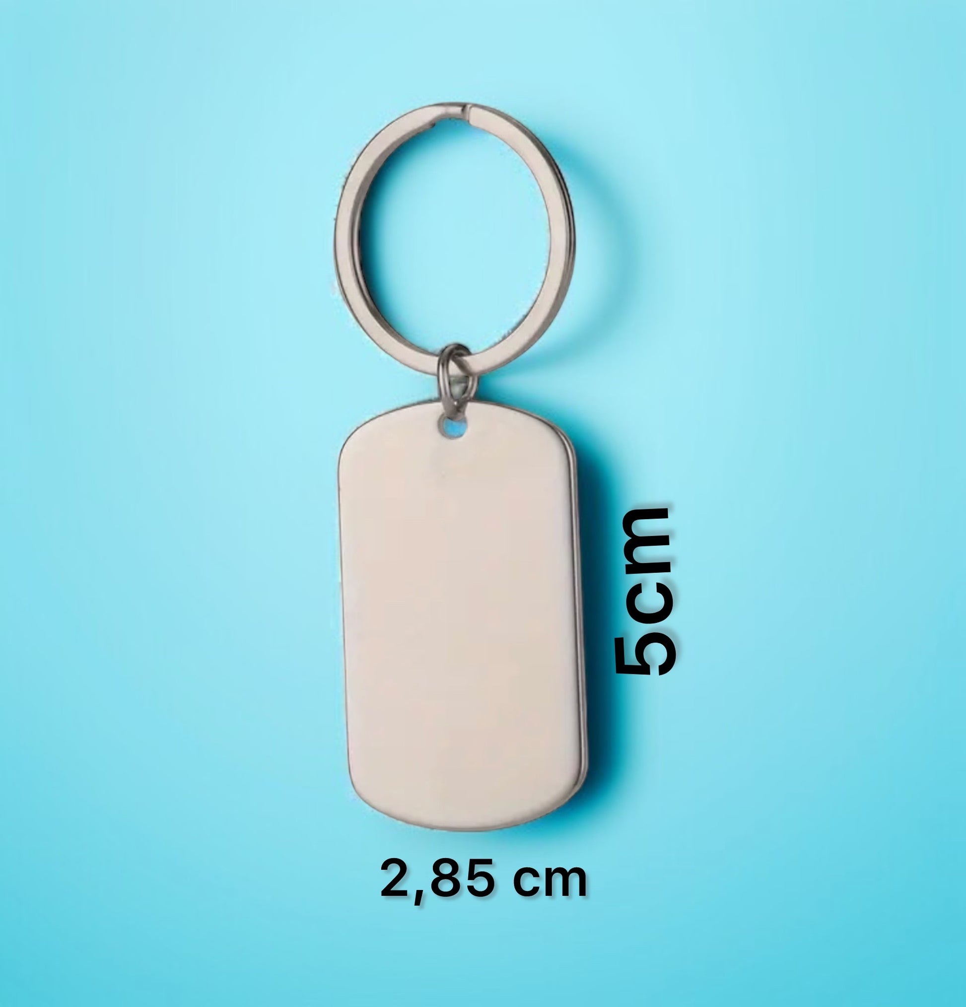 Breloc personalizabil din oțel, cu dimensiunile de 5 cm pe 2,85 cm, perfect pentru a adăuga o notă personală setului de chei. Fabricat din oțel de înaltă calitate, este durabil și rezistent la uzură. Poate fi gravat cu un nume, o dată specială sau un mesaj inspirațional, făcându-l un cadou perfect sau un accesoriu unic care păstrează amintiri prețioase. Transformă-l într-un simbol al conexiunii tale cu cei dragi!